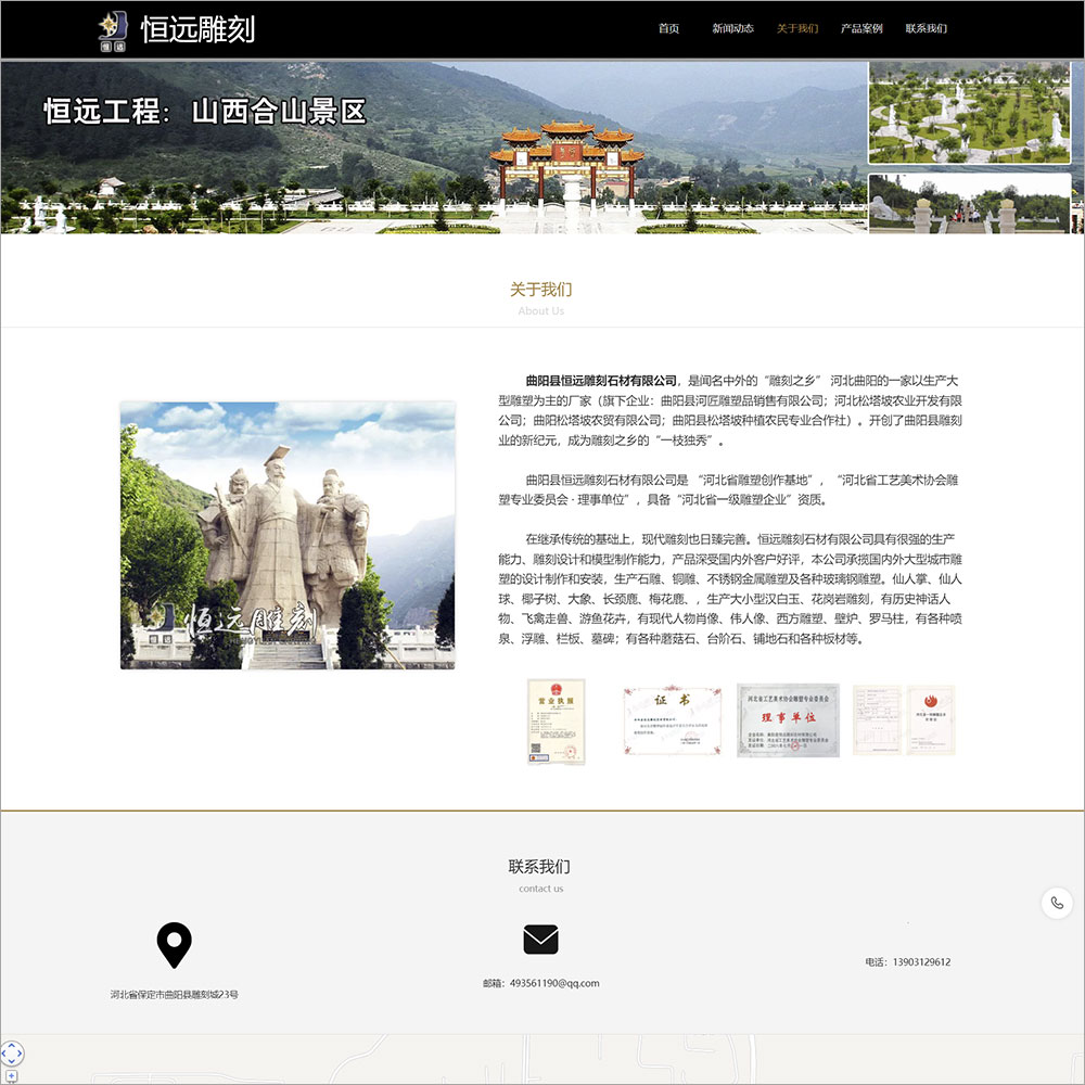 曲阳县恒远雕刻石材有限公司 承揽国内外大型城市雕塑的设计制作和安装,生产石雕、铜雕、不锈钢金属雕塑及各种玻璃钢雕塑。