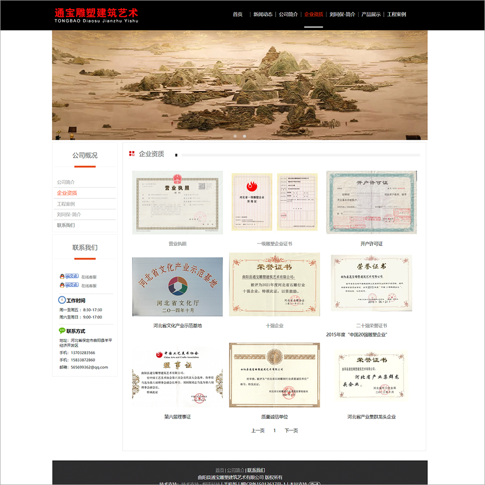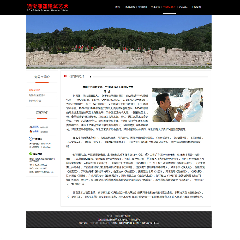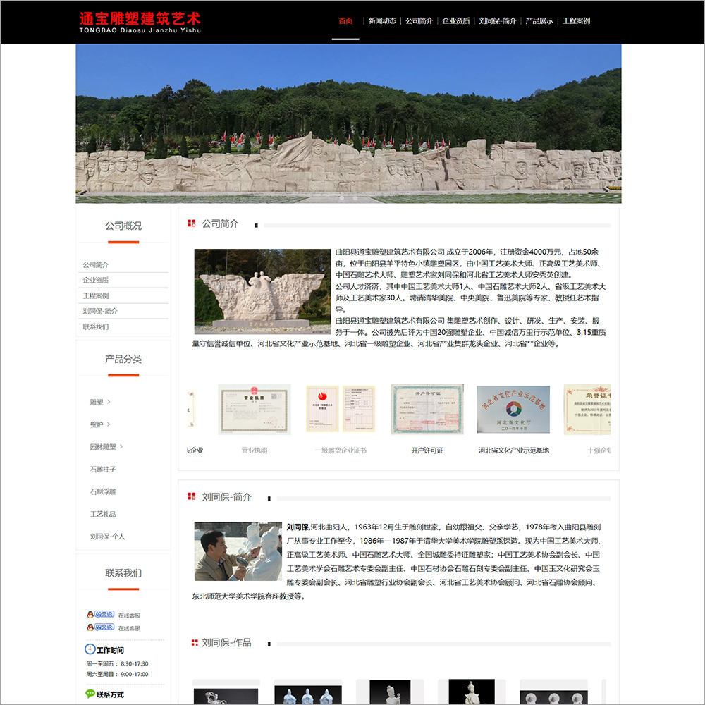 曲阳县通宝雕塑建筑艺术有限公司 研发人物类、楼台亭阁、飞禽走兽、园林城雕等雕塑产品畅销80多个国家和地区,以精湛技艺和超人胆识圆满完成了数百项雕塑工程任务。